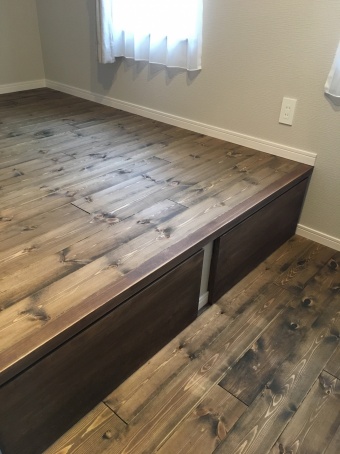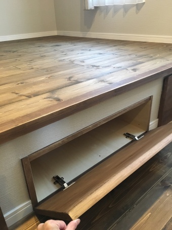 小上り部分のところに木製の扉がついていて、あけると中は収納になっています(^^♪