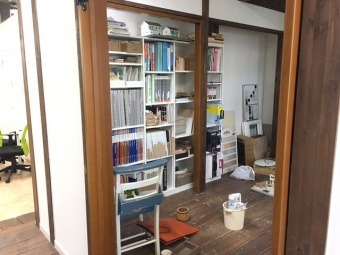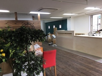 左側の壁で囲われた部分がナチュリエのショールーム兼打ち合わせスペース。