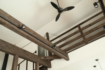 薪ストーブのある土間を中心に、ワンフロアをいかした生活動線や家のかたちを利用した、リビングの吹き抜けとつながる多目的なロフト。