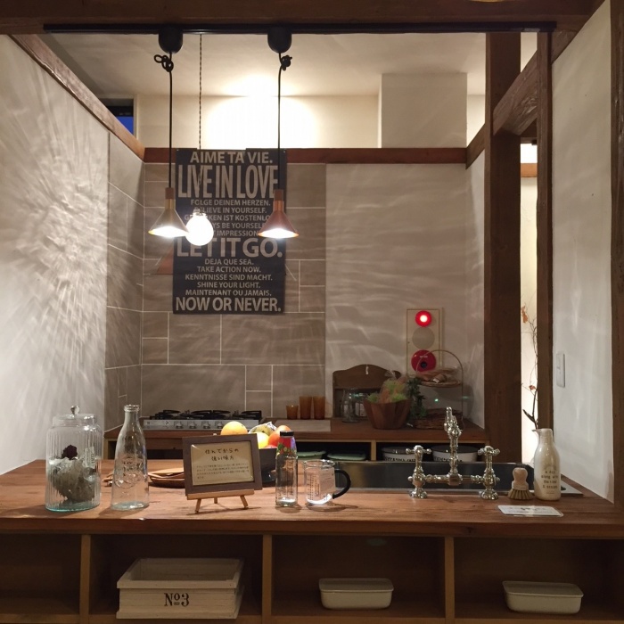 ナチュリエらしいぬくもり溢れるキッチン、次はシェルフをつけてみようと目論んでいます。