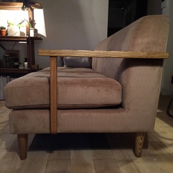 固めの座り心地と、コーデュロイのあたたかみのある張地が気に入っています。