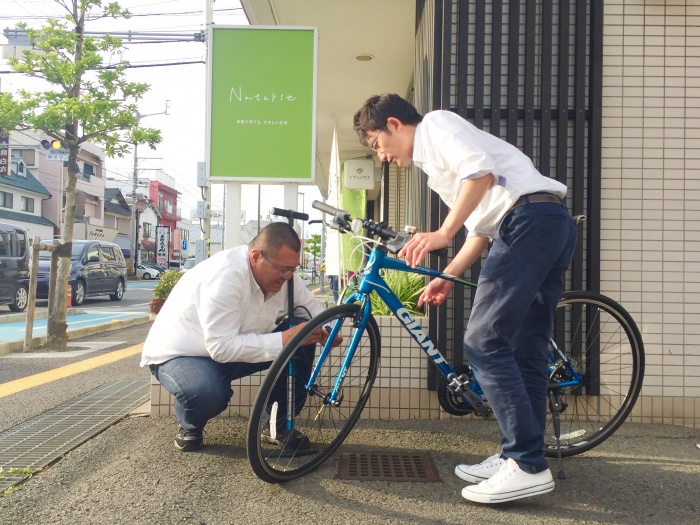 スタッフよねざわ、自転車始めました2=初めての空気入れ= ~松山スタッフ~