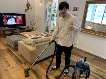 普通に掃除機をかけて、大掃除などで拭き掃除もやるときには固く絞った雑巾で拭いてあげてください。無垢材の床拭き用クリーナーもあるみたいです。