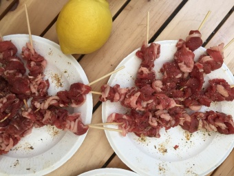 羊肉をクミンや塩で味付けして、串打ちするだけというお手軽な一品。