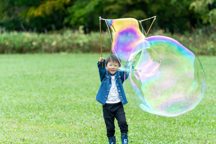 不安定な天候でしたが、たくさんのシャボン玉がふわふわと舞い、紙芝居屋さんの抑揚のある声が響く、ゆったりとした空間。