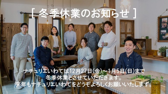 ナチュリエいわては、12/27〜1/5まで冬季休業とさせていただきます!