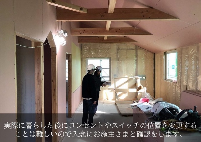 ※配線検査とは、スイッチやコンセントの位置をお施主様と確認する検査のことです