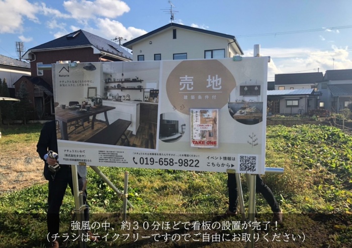 先日、滝沢市大釜の売地に看板を設置してきました。