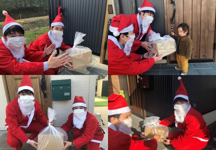 「うわぁ!サンタさんだぁ!」とナイスリアクションのお子さまや、玄関先に置くつもりが直接受け取ってくださったオーナーさまも・・・