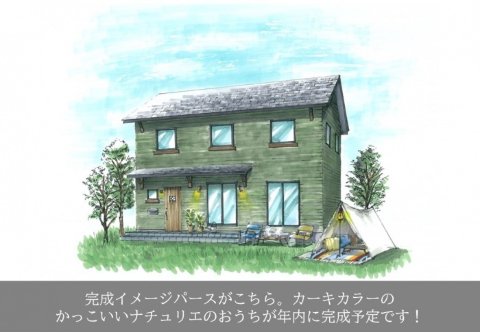 年内にカーキカラーのかっこいいナチュリエのおうちが完成予定です。