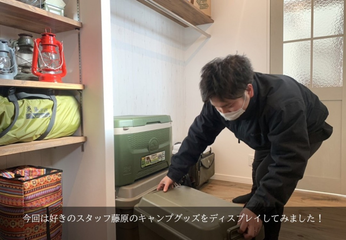 今回は藤原のキャンプグッズを見学会会場にディスプレイてみました!