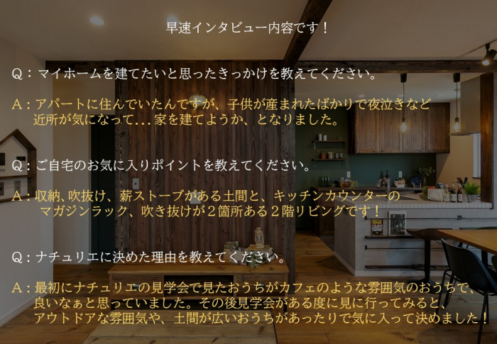 1月30日までオーナーズハウスでお借りしたお施主様にオーナーインタビューを