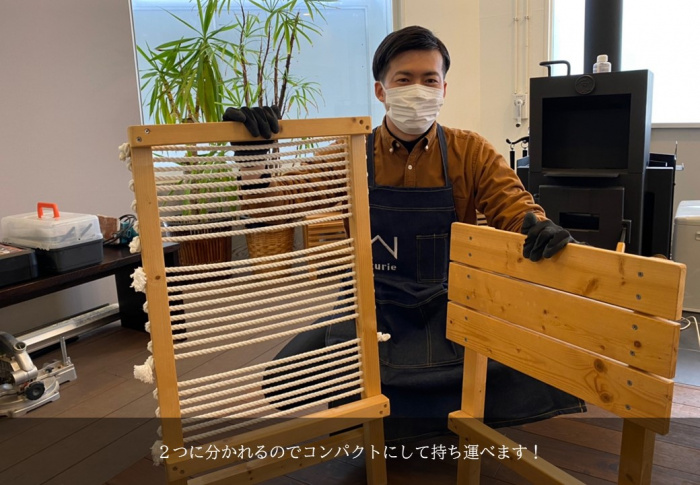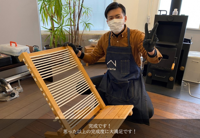 今回の椅子は持ち運べるように折り畳み式にしました!