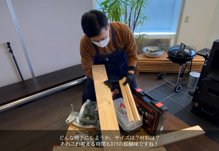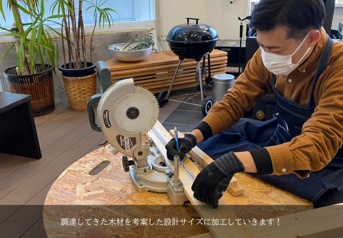 調達してきた木材を考案した設計サイズに加工して組み立てて、