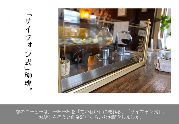 店のコーヒーは、一杯一杯を「ていねい」に淹れる、「サイフォン式」。