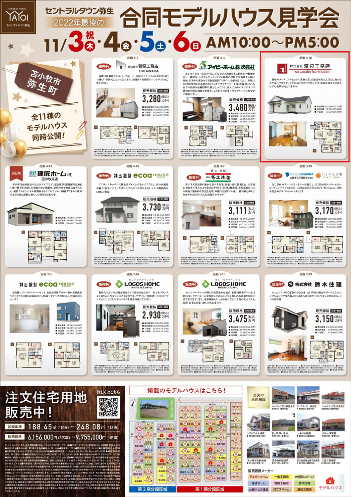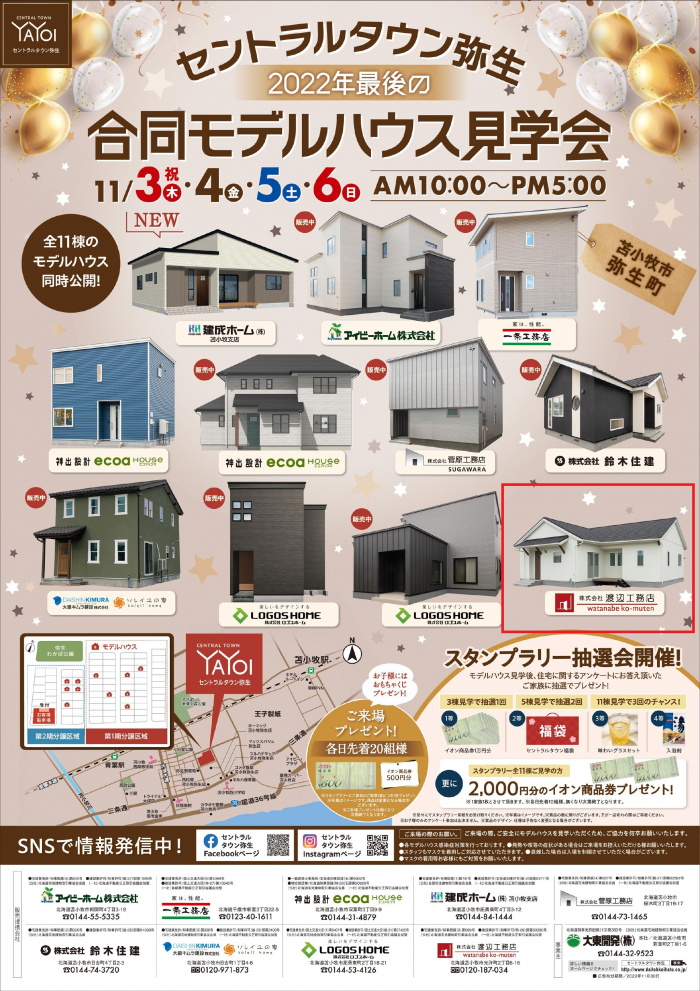 2022.10.25 弥生町合同イベント開催☺ 苫小牧市弥生町セントラルタウンにて『合同モデルハウス見学会』を開催♪ 11月3日(木)~6日(日)の4日間のイベントとなっております! スタンプラリー来場特典もありますので、 お家をご検討の方はぜひこの機会にお越しください^^ share