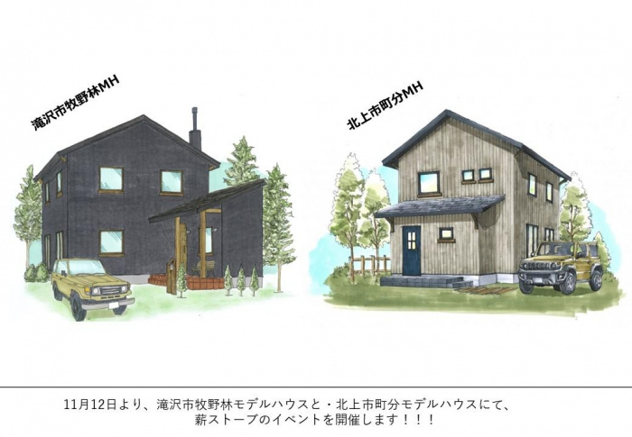 滝沢市牧野林モデルハウス、北上市町分モデルハウスにて、