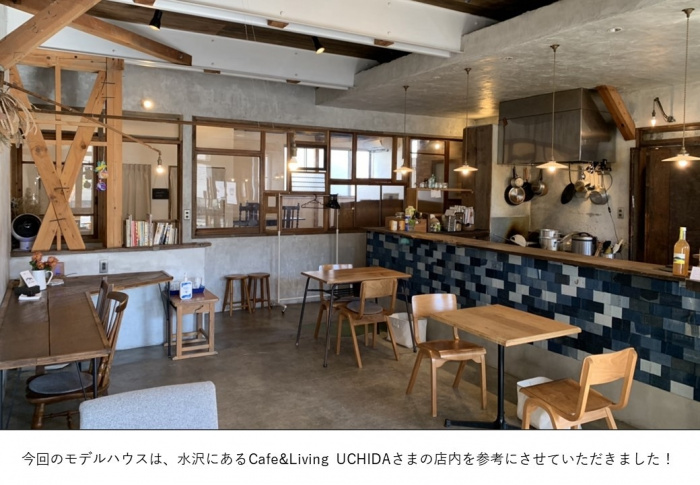 今回のモデルハウスは、奥州市水沢にある、Cafe&Living Uchidaさまの店内を