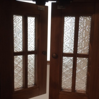 アンティーク風ガラスを沢山使われている、