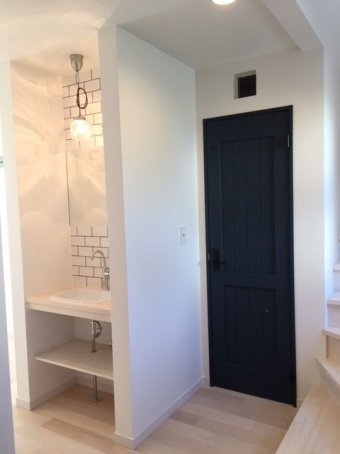 トイレのドアにネイビー色を選ばれて、丁度良い差し色になっていました。