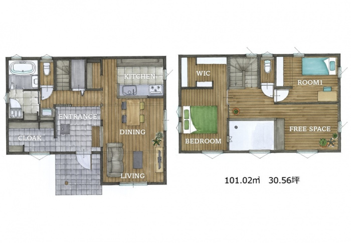 #ナチュリエ #注文住宅 #木の家 #薪ストーブ #薪ストーブのある家 #木のある暮らし #自然素材 #無垢の家 #無垢材 #無垢の床 #アウトドア #アウトドアライフ #土間リビング #土間収納 #吹抜け #吹抜けリビング #30坪の家 #間取り図 #間取り
