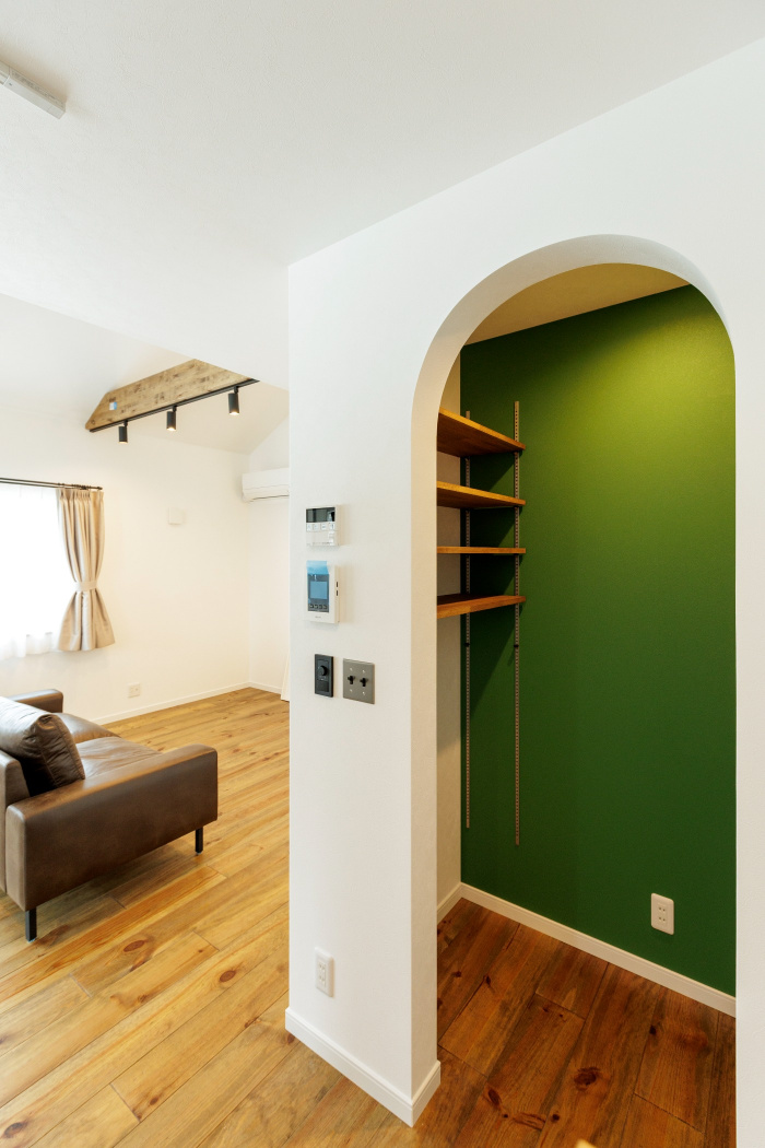 白を基調に、アクセントクロスやアール壁、