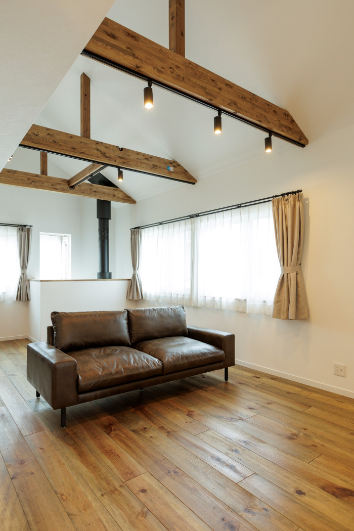 2階リビングは連なる梁が圧巻の
