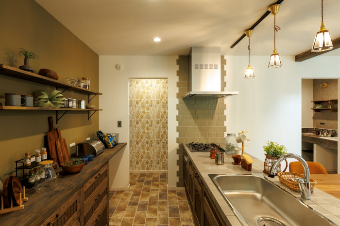 キッチン横には家族で並んで使用できる、
