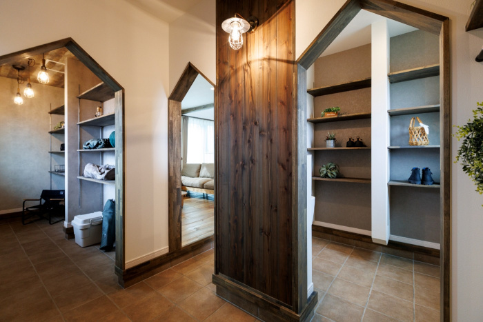 玄関ドアを開けると、広々とした土間スペースと