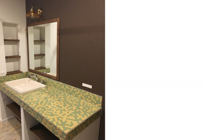 素敵なキッチンタイルの洗面化粧台