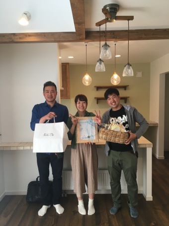 平日の引き渡しでしたので、設計の熊谷、コーディネーターの草野も駆けつけてくれました!