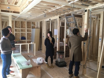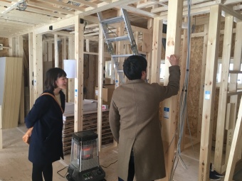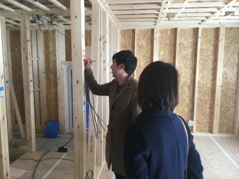 配線立会いとは設計コーディネートで打ち合わせをしたコンセントの位置や照明の位置の確認を骨組みまでできた建物の状態で確認してもらうものです。