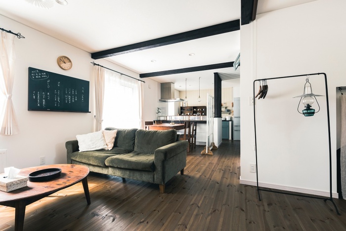生活の中心となるリビングには、アンティークな雰囲気のテーブルとソファを置くだけで、全体の雰囲気を演出できます。