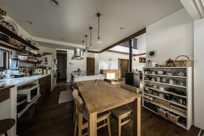床に無垢材を使うのはもちろん、キッチンやドア、窓枠、収納家具などに木材を使うとアンティーク感が高まります。
