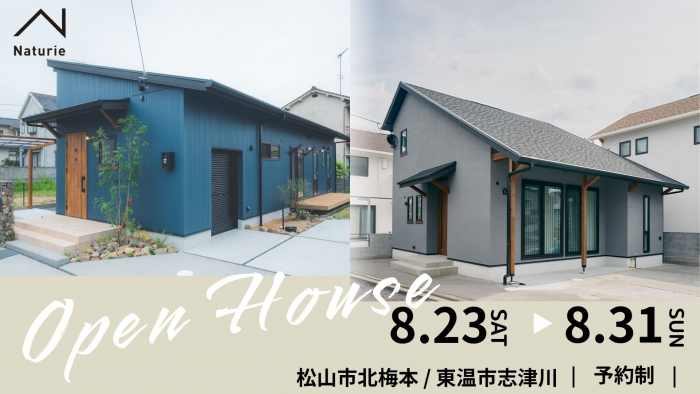 東温市志津川 823Sat - 831Sun 【2棟同時見学会】ガレージとロフトのある平屋&1階完結型の無垢の家 事前にご予約が必要です。 東温市志津川字力石甲1129 今すぐお申し込み! イベント参加予約 ご来場プレゼント