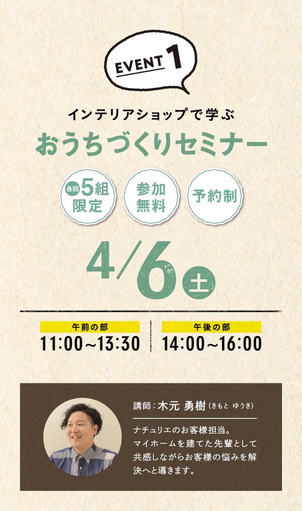 4月6日(土)11:00~/14:00~・7(日)9:45~