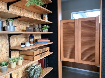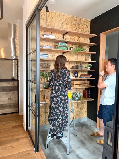 お気に入りを自分らしく飾れる土間スペースにある棚も必見です。