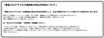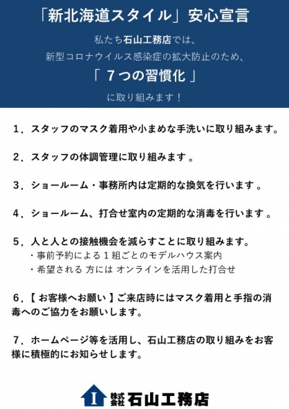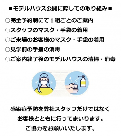 感染拡大防止対策として「密集・密閉・密接」を避けるために完全予約制の見学会とさせていただきます。