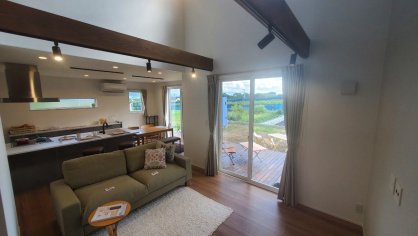 ●ウッドデッキとのつながりが開放的なリビング