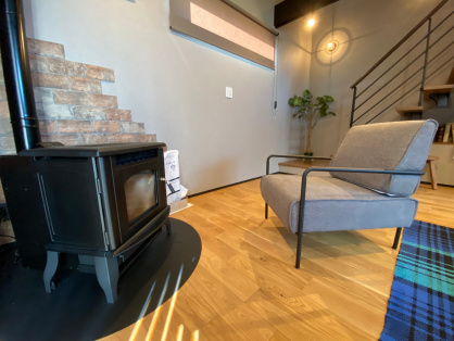 お気に入りの椅子に座ってペレットストーブの傍らで過ごす特別な時間