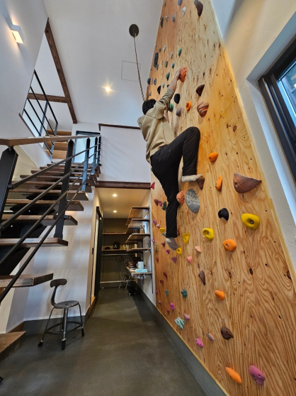2階まで続く5mのボルダリングやうんていのある遊べる通り土間