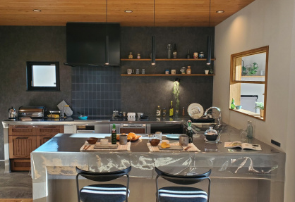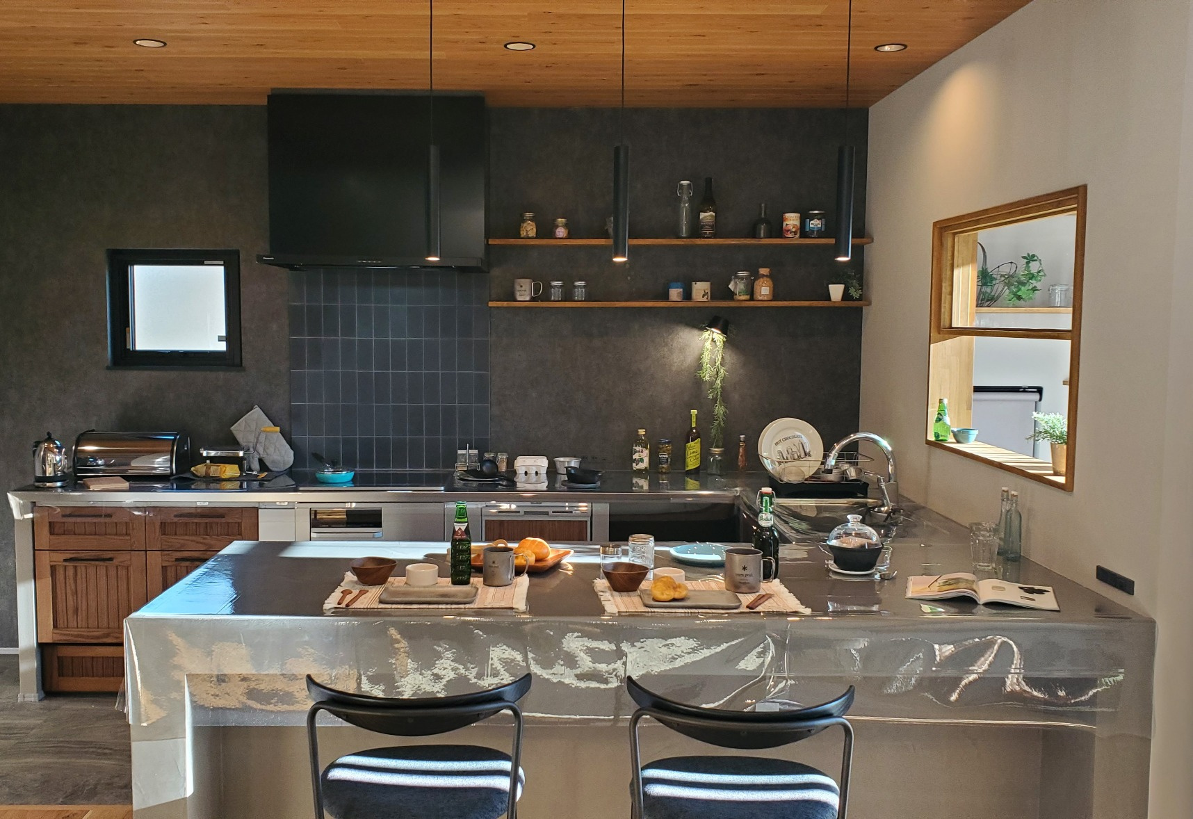 キッチン以外にもバイクガレージや土間サロンなど見所いっぱいです。
