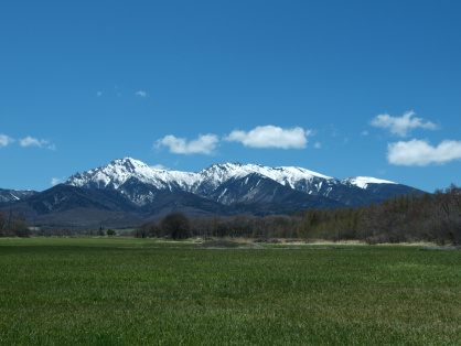 リビングからキッチンから、110坪の拾い庭からは八ヶ岳が一望。