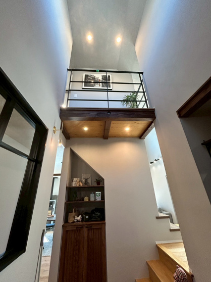 上を見上げると、吹抜けにピクチャースペースを配置。