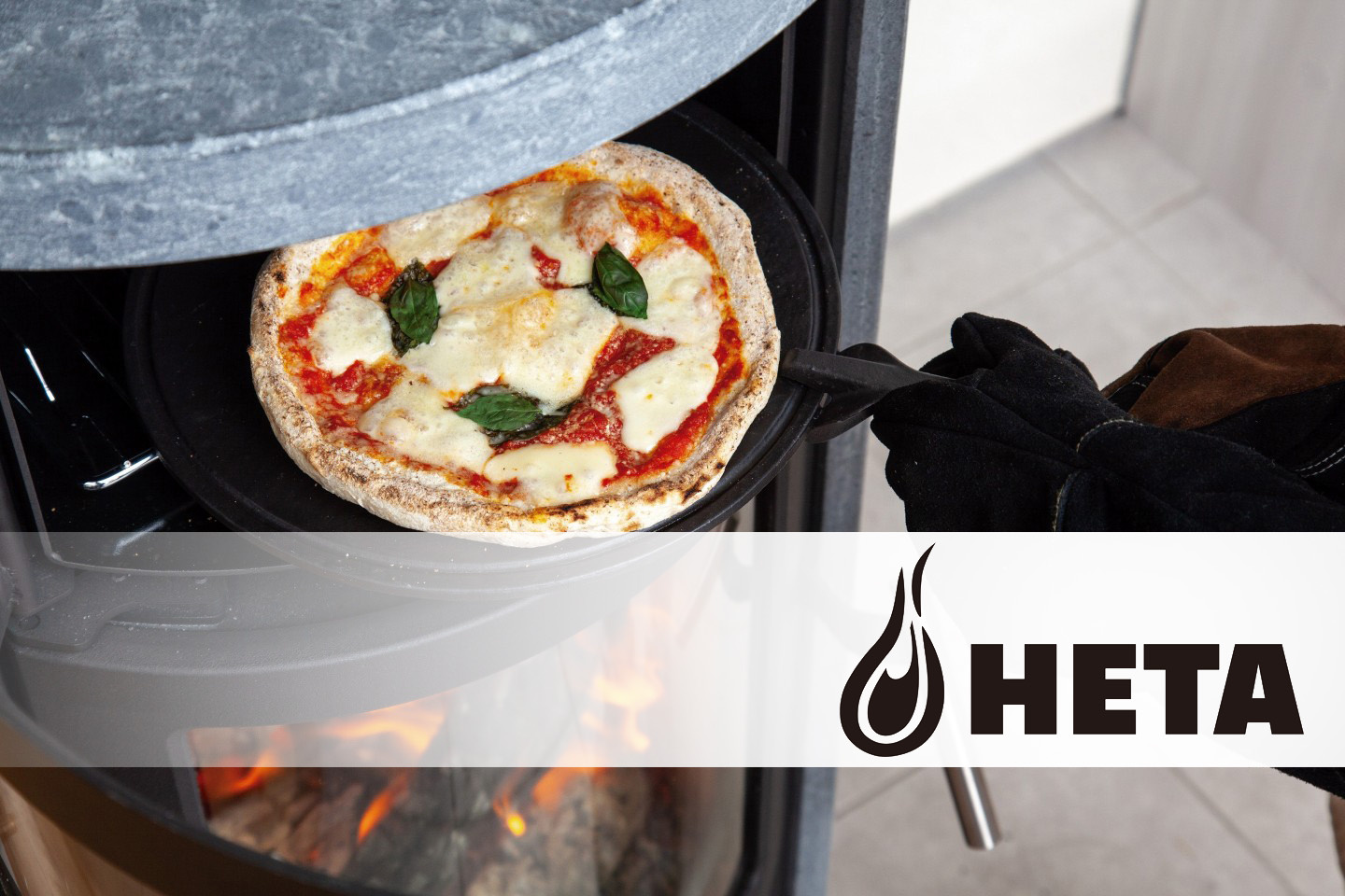 土間には注目のHETAのオーブン付き薪ストーブを設置。