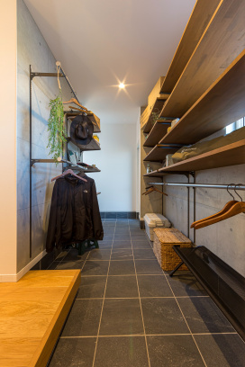 通り土間を活かした土間CL。ギアの収納にもぴったり。