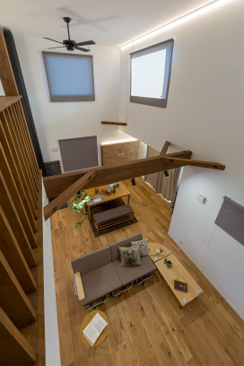 大屋根の最大限の効果は、やっぱりちょうどいい勾配天井の吹き抜け。