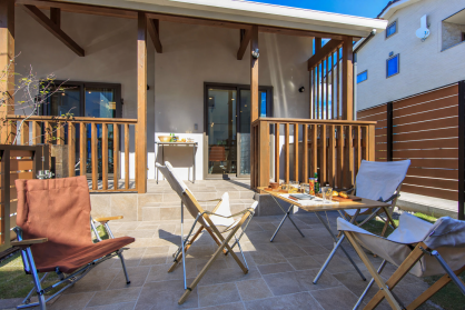 庭でBBQ、テラスでのんびり食事。そんなライフスタイル。