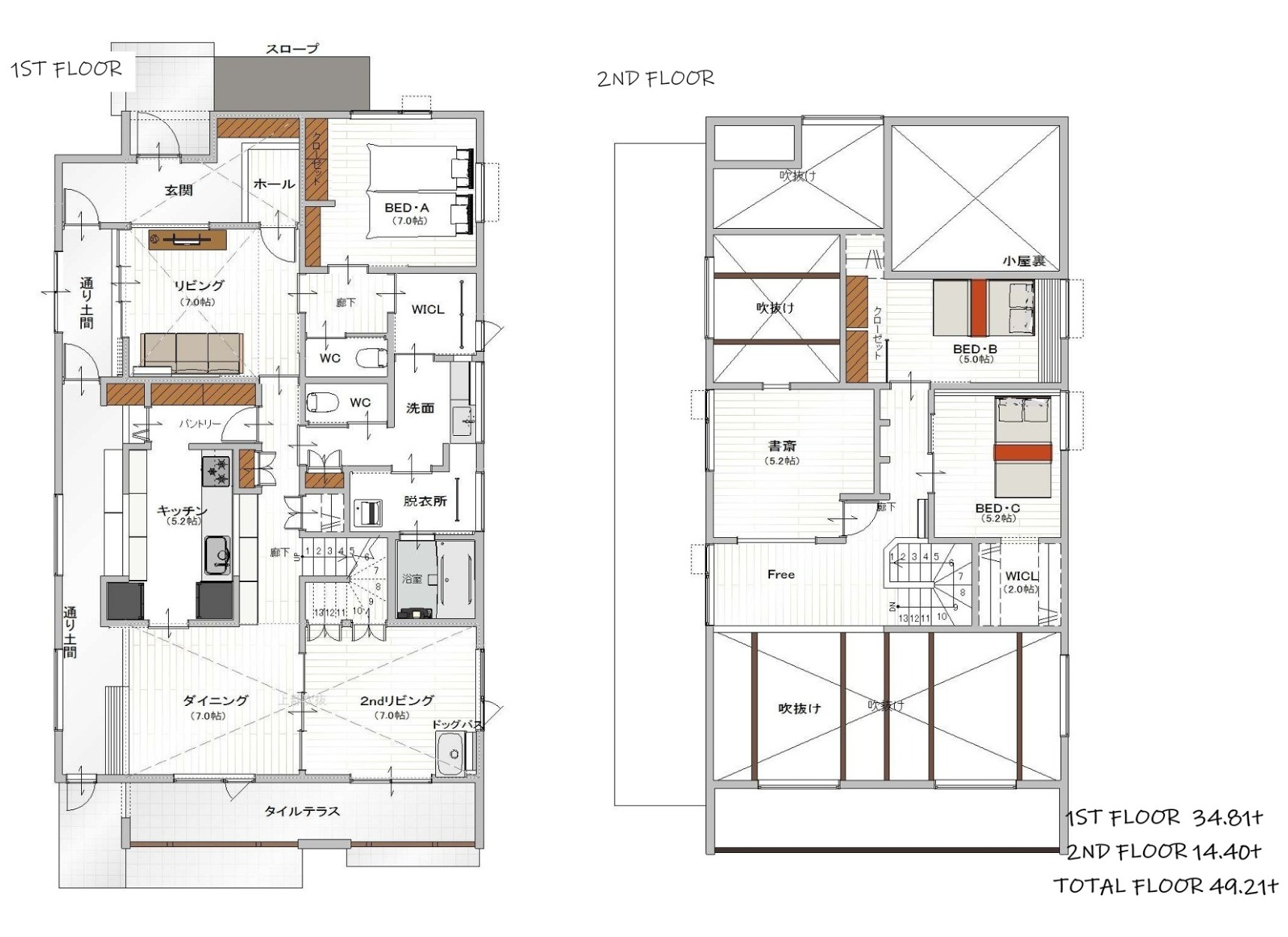 延床面積49坪のWリビングの間取り。