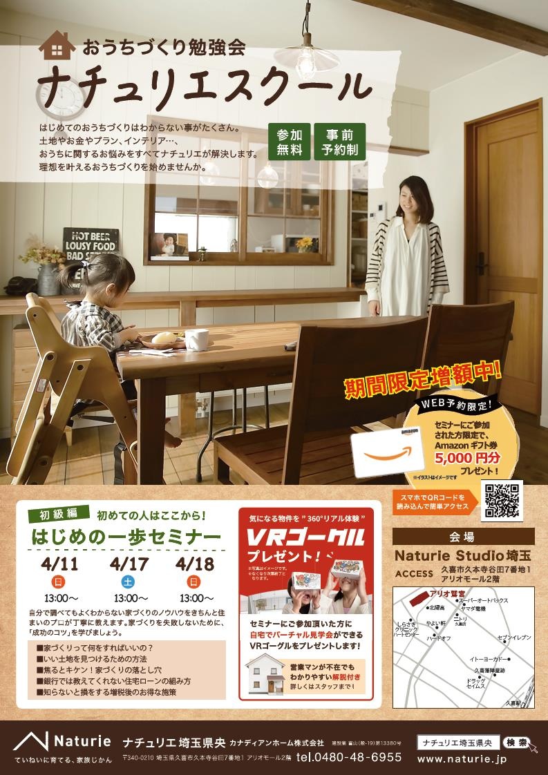 ナチュリエのホームページから当店に資料請求いただき、こちらのイベントにご予約&ご参加いただいた方全員に、Amazonギフト券5000円分をプレゼントいたします!